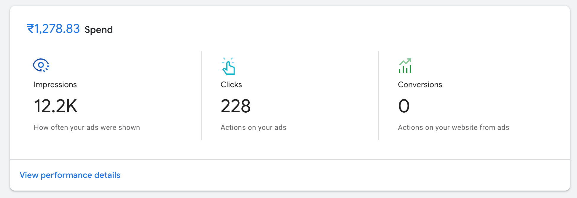 ~INR1300 ($16) was spent to get 104 clicks, costing $0.15 per click.