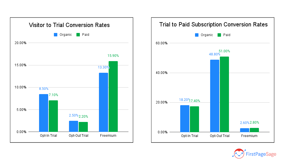 Based on this data on average SaaS conversion rates, a 5% conversion rate should be doable.